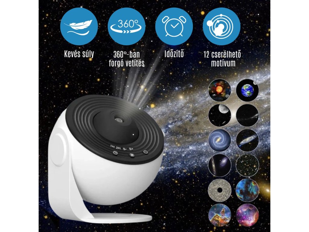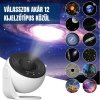 Űr-égi kivetítő csillagokkal és köddel gyerekszobába, partira vagy házimoziba, 12 megjelenítési forgatókönyv, hálózati tápellátás, fehér.