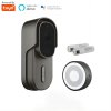 Okos vezeték nélküli WiFi kapucsengő 130°-os kamerával, Full HD (1080p) felbontással, beltéri és kültéri használatra, mozgásérzékelés, kétirányú távoli kommunikáció, telefonos értesítések, újratölthető akkumulátor, Android és iOS támogatás, Tuya Smart/Smart Life alkalmazás, sötétszürke vagy fekete színben.