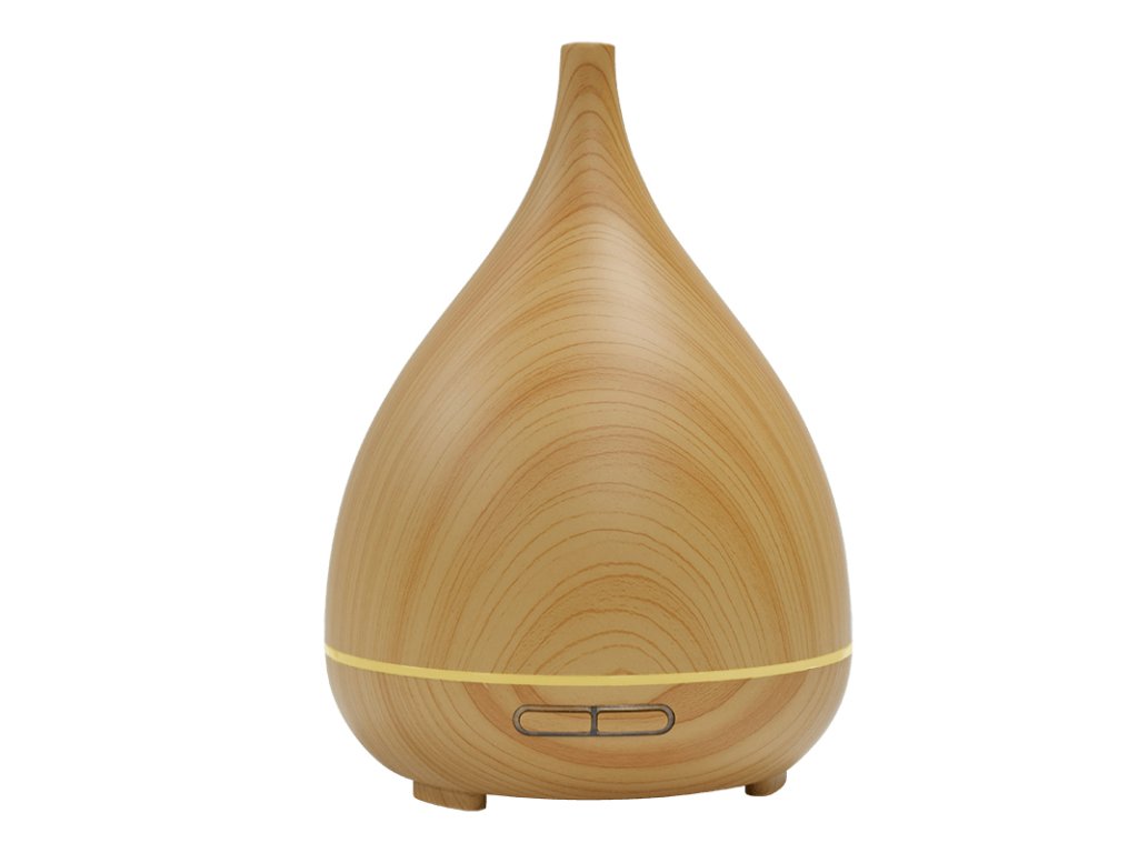 Intelligens aromadiffúzor, 300 ml tartály térfogat, 7 színű háttérvilágítás, 15 órás üzemidő, WiFi, háttérvilágítás és időzítés ki- és bekapcsolása, világosbarna fa színű