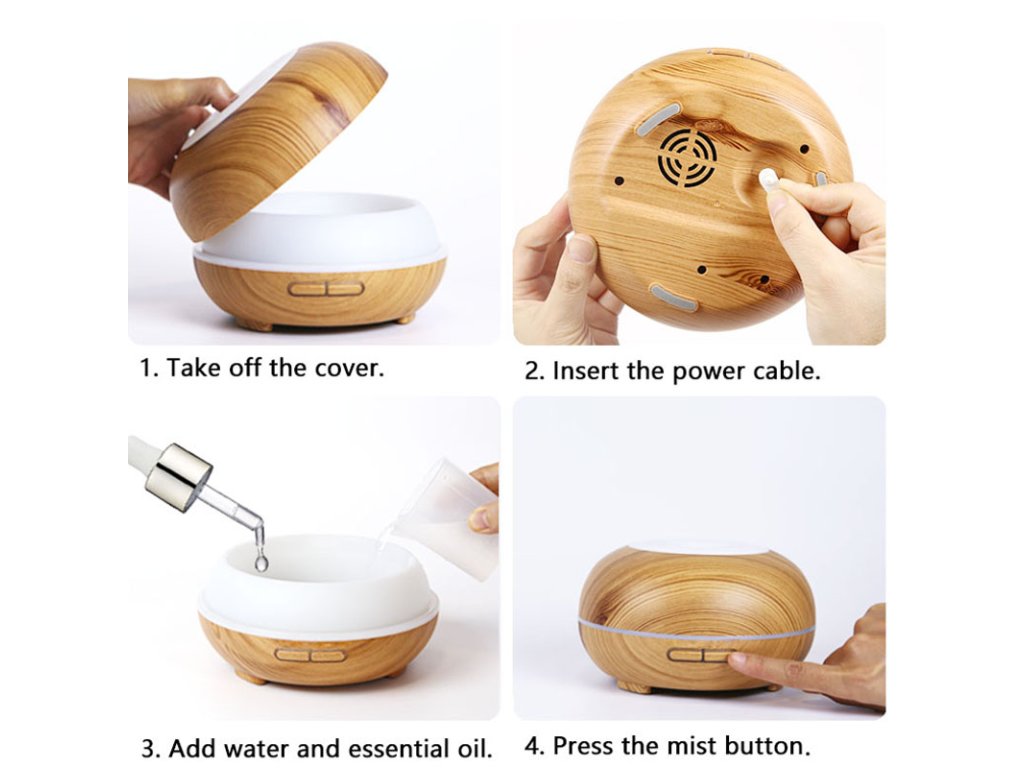 Vegye le a diffúzor tetejét, adjon hozzá elegendő vizet és néhány cseppet az Ön által preferált illatesszenciából, nyomja meg a bekapcsoló gombot, csatlakoztassa a diffúzort wifi-hez és vezérelje a TuyaSmart alkalmazással. A diffúzort csatlakoztathatja az Amazon Alexa / Google Home rendszerhez, és hangjával kényelmesen vezérelheti az intelligens diffúzort, beleértve a színeket, az időzítőt, a pára beállításait és még sok mást.