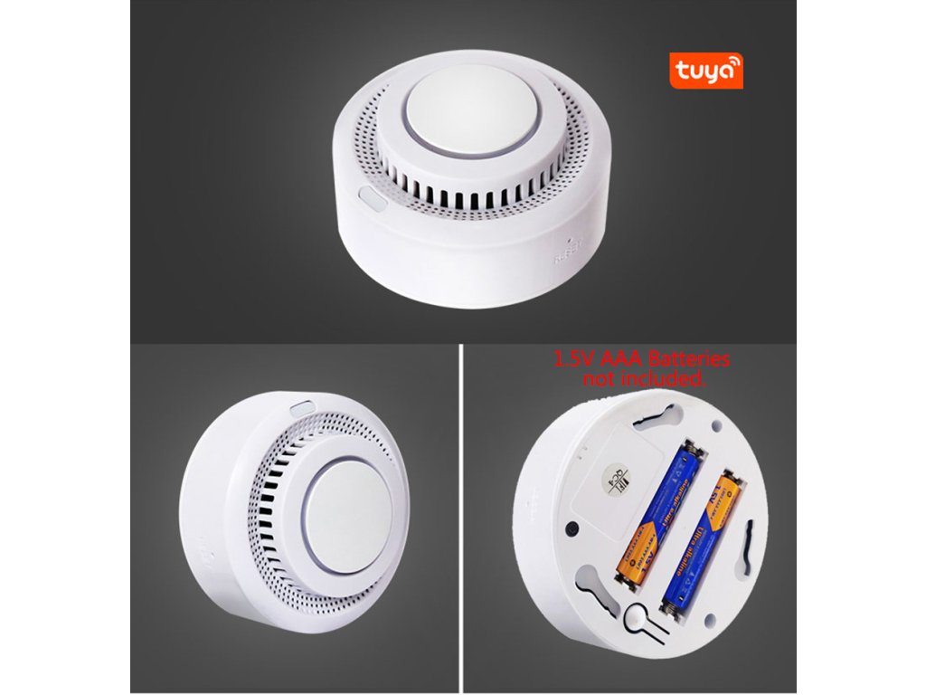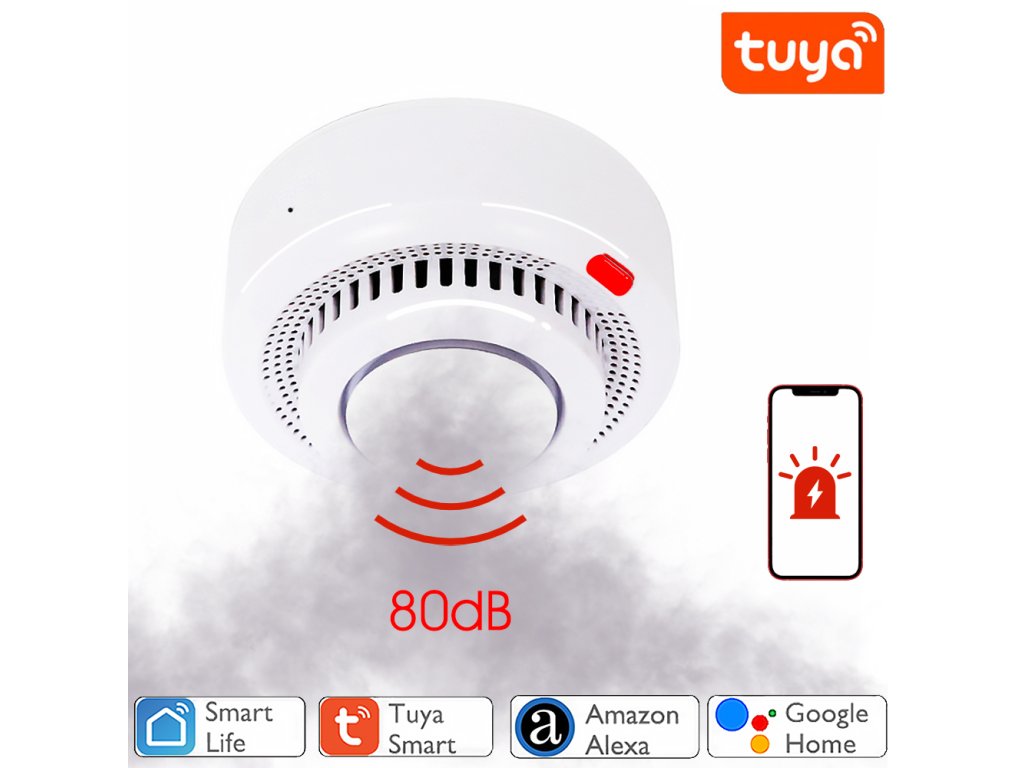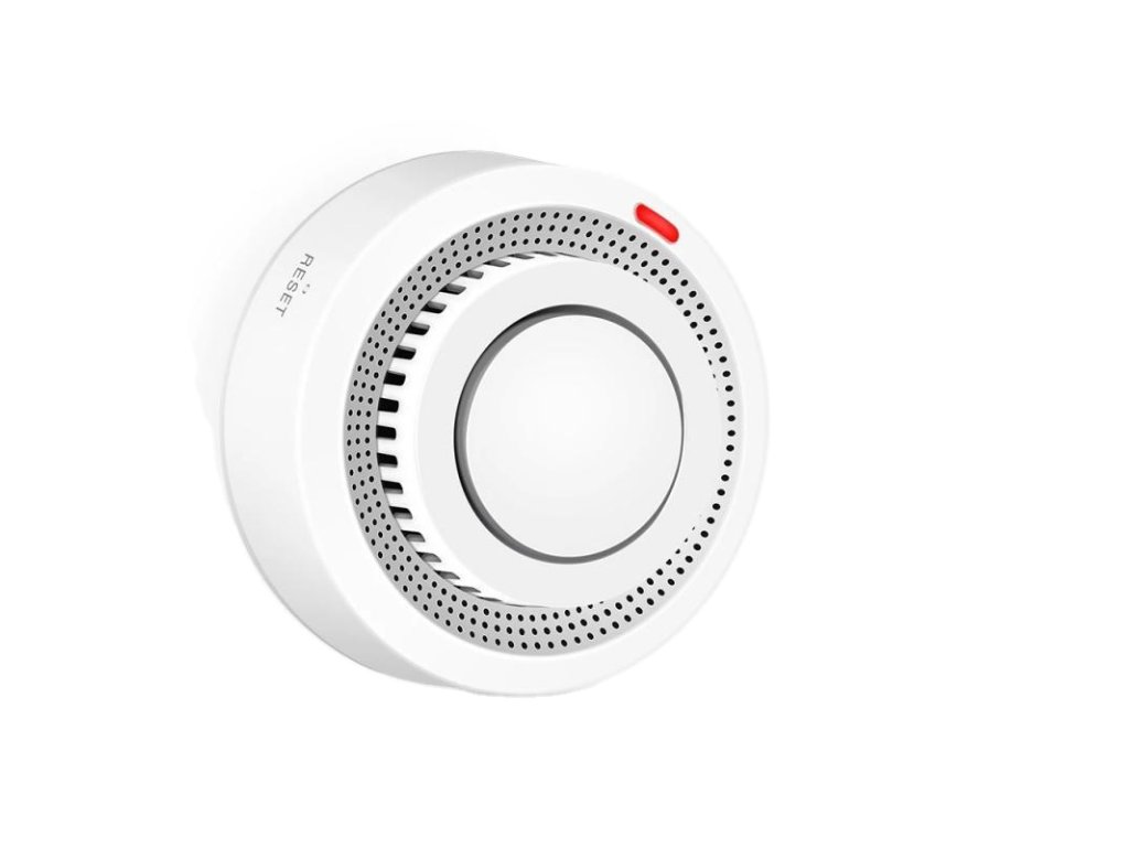 intelligens füstérzékelő, ZigBee, akusztikus riasztás 80 dB, mobilalkalmazás Tuya Smart / Smart Life, alacsony töltöttségre figyelmeztető jelzés, fehér.
