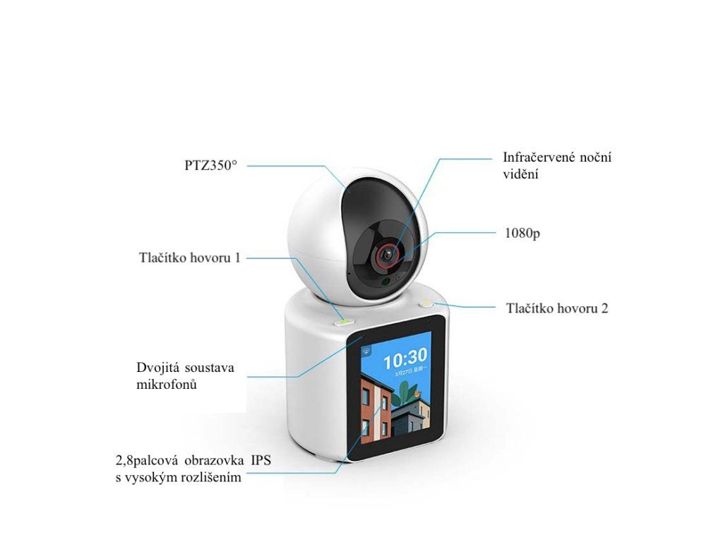 - Kétirányú interaktív kommunikáció a 2,8 hüvelykes IPS képernyőnek köszönhetően. Úgy léphet kapcsolatba a hívókkal, mintha a szobában lenne velük. Nagyszerű, ha meg kell győződnie arról, hogy szerettei jól vannak.