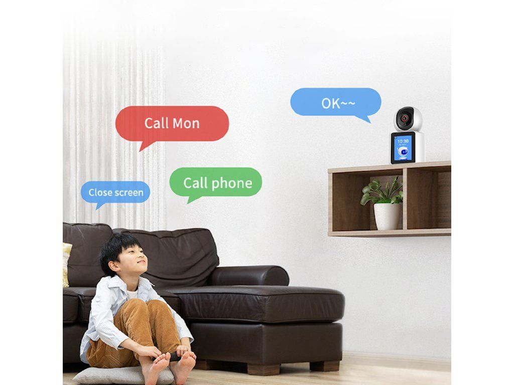 Az intelligens kamerafelvétel nagyon rugalmas. A 350°-os vízszintes elforgatással és 60°-os függőleges dőléssel a kamera a teljes területet lefedi. Az Im Cam mobilalkalmazáson keresztül valós időben nyomon követheti, hogy mi történik otthonában, bárhol is legyen a világon. A kamera kétirányú kommunikációval rendelkezik, így a 2,8 hüvelykes IPS-képernyőn keresztül nemcsak hallani, hanem látni és beszélni is tudsz szeretteiddel.