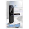 WiFi intelligens kilincs, szállodákba és szálláshelyekre alkalmas, vezérlés Tuya Smart/Smart Life mobilalkalmazással, 5 feloldási lehetőség (kulcs, ujjlenyomat, numerikus kód, intelligens kártya, mobiltelefon), beépített HD kamera, automatikus zárási funkció, jobb és bal tájolás, 4 db AA elem, fekete.