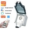 Intelligens kültéri konnektor, Tuya Smart / Smart Life mobilalkalmazás, WiFi, IP66 vízálló, Amazon Alexa és Google home hangasszisztens támogatás, fehér kivitel.