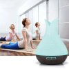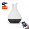 Intelligens aromadiffúzor, 400 ml-es tartály térfogat, 7 színű háttérvilágítás, 12 órás üzemidő, WiFi, háttérvilágítás és ki/be kapcsoló időzítő, fehér színű és sötétbarna fa.