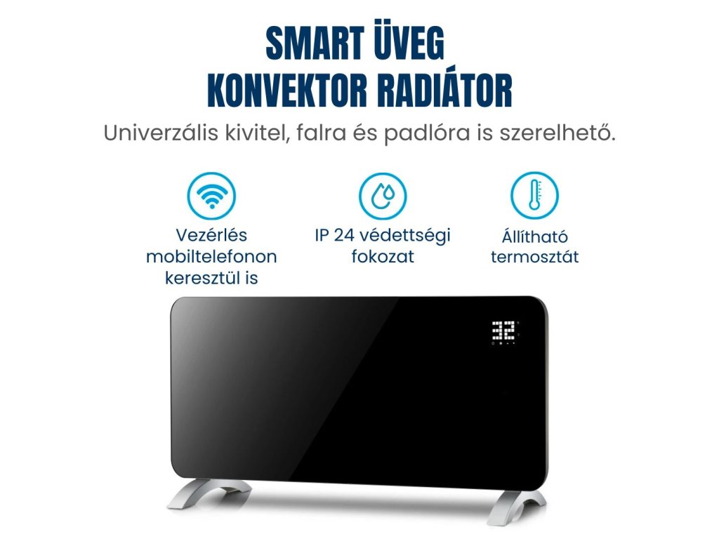 BOT üveg SMART konvektor radiátor GPH1 WiFi