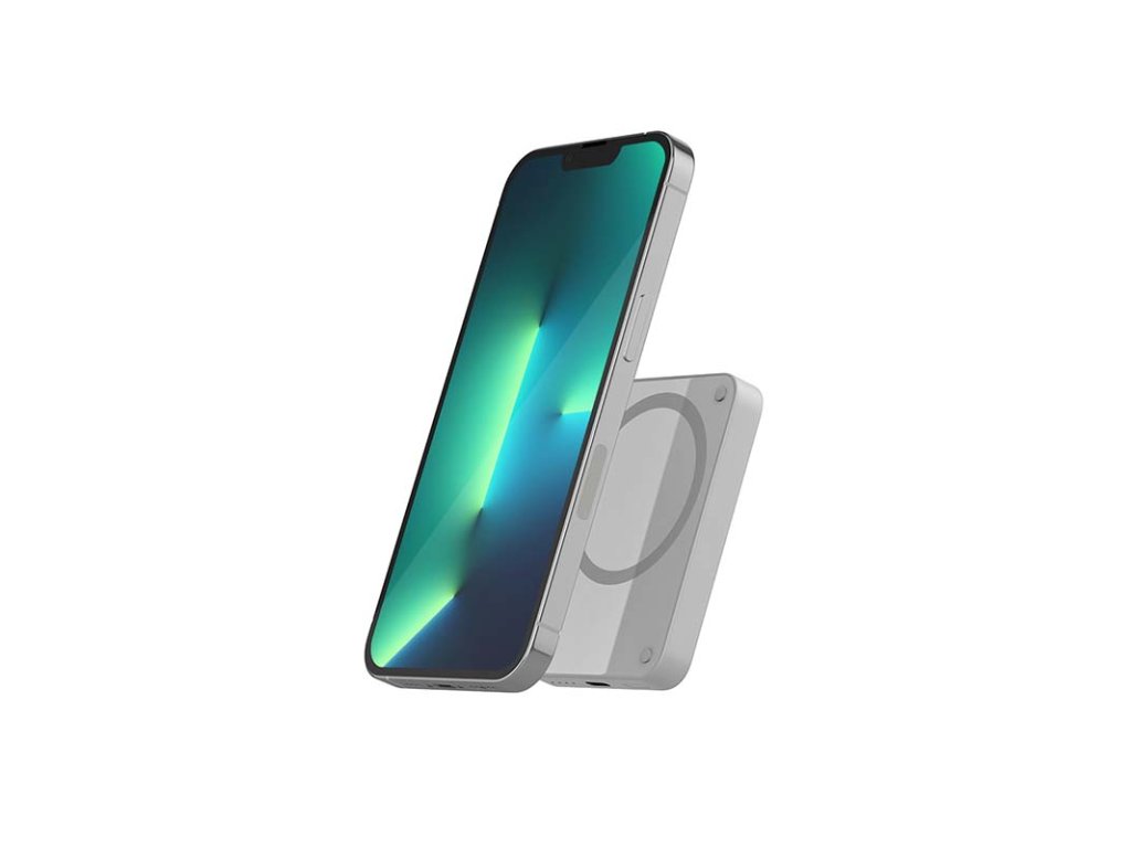 MagSafe technológiával kompatibilis, nagy teljesítményű power bank. A kompakt méret és a minimalista kialakítás első pillantásra megragadja a tekintetet. A beépített nagy teljesítményű mágnes akár 15 W-os teljesítményű, az iPhone 7,5 W-os töltési teljesítmény mellett biztosítja az okostelefon hatékony töltését. Nem kell várnia a töltésre, ha ezt a power bankot használja, mivel egyszerre tölthető és töltheti az eszközeit. Ezenkívül szilikonbetétekkel van ellátva, így a telefonra való felragasztás után nem okoz nem kívánt karcolásokat a hátlapon. A telefon gyorsabb és hatékonyabb töltése érdekében mellékeltünk egy USB-C Lightning-kábelt és egy USB-A USB-C kábelt is.