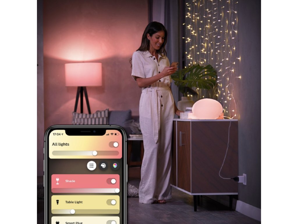 Smart Plug Philips Hue Smart Plug rendelkezik kompakt és feltűnésmentes kialakítás és alkalmas a használatra szabványos aljzatokba. Könnyedén átkapcsolhatja egy közönséges lámpa vagy lámpa fényét egy intelligens lámpatest, amelyet vezérlés alkalmazáson keresztül okostelefonján vagy egy hanggal. Via Bluetooth a dobozból kivéve azonnal használható. Vagy a hídhoz való csatlakozással A Hue Bridge (külön megvásárolható) ezután ellenőrzés bárhonnan mobilalkalmazás Philips Hue okostelefonjáról, és élvezze az összes funkcióját.