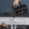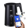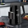 Intelligens vízforraló digitális hőmérséklet-beállítással 0-100°C között, érintésvezérléssel, modern dizájnnal, hőmérséklet-tartási funkcióval 40°C, 55°C, 80°C és 90°C akár 2 órán keresztül (a Tuya Smart alkalmazásban akár 12 órán keresztül), beállítható az idő, amikor a vízforralóban lévő vizet fel kell melegíteni, fekete színben