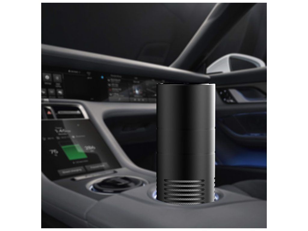 Autó légtisztító, amely 5 réteget tartalmaz, hepa és szénszűrő, tisztítja és illatosítja járművét, 2 üzemmód, szín: fekete
